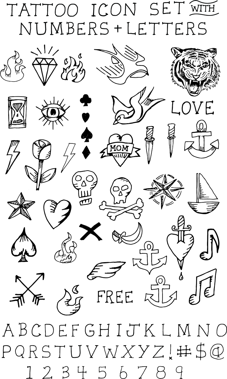 Hand Drawn Tattoo Icons Clipart Set Early Bird